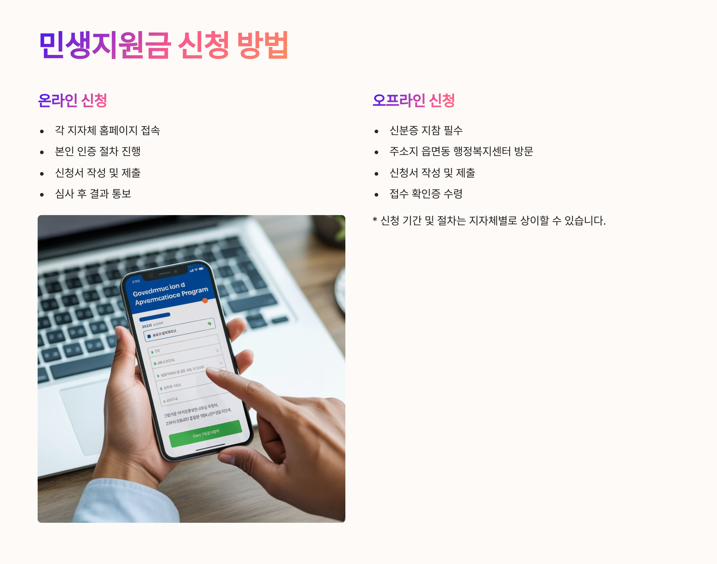 • 온라인으로 간편하게 신청 가능 (복지로, 지자체)